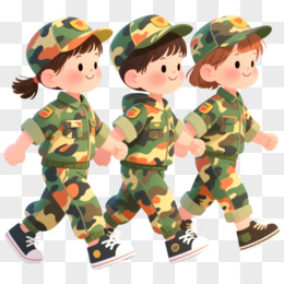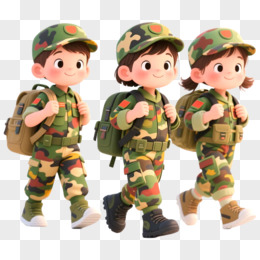 手绘卡通军事夏令营军训免抠元素 AI元素 数字艺术