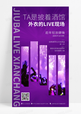 紫色朋克风炫彩酒吧开业活动促销手机宣传海报