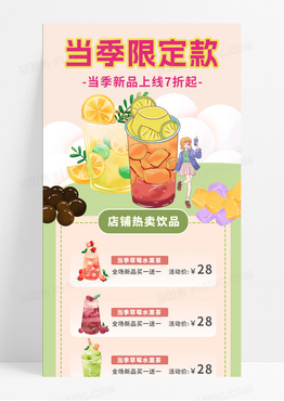 绿色粉色卡通简约当季限定款手机长图奶茶手机长图