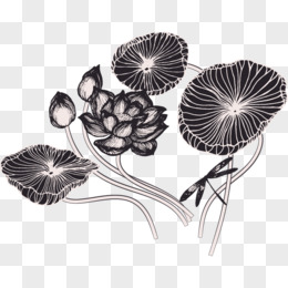 手绘黑色线描荷花免抠素材