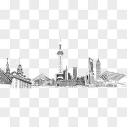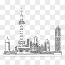 手绘线稿上海外滩免抠元素