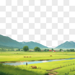 手绘国潮梯田麦穗农田梯田山川微景观免抠元素
