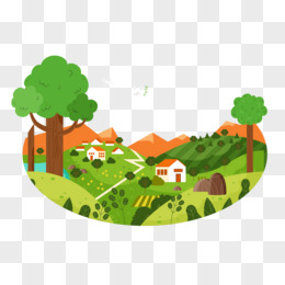 手绘插画风梯田绿色麦穗云纹燕子免抠元素