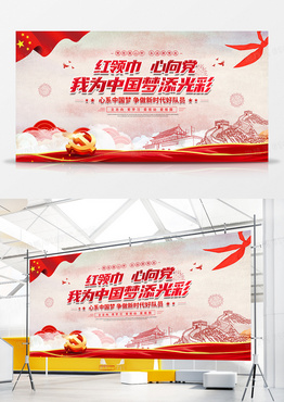 手绘卡通学生系红领巾敬礼场景插画免抠元素