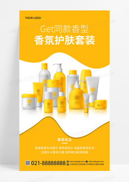 黄色简约香氛护肤套装美容护肤产品手机宣传海报
