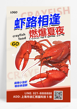 虾路相逢小龙虾红色蓝色创意海报