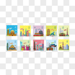一组矢量城市代表性建筑合集素材