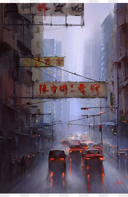 手绘香港街道插画