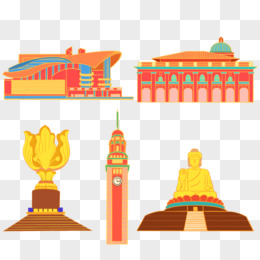 手绘香港地标建筑套图免抠元素一