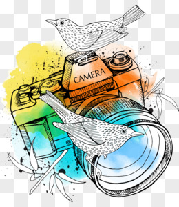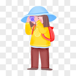 手绘卡通小姐妹摄影拍照采风免抠元素
