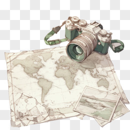 卡通一幅世界地图和相机免抠元素