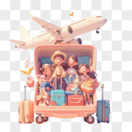 3D卡通一家人坐着机场摆渡车免抠元素