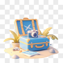 3D卡通行李箱和相机免抠元素