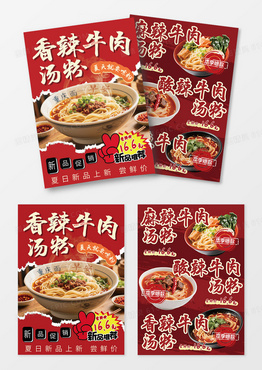 红色美味香辣牛肉汤粉牛肉粉汤粉美食宣传单