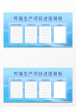 蓝色简约时尚熊猫生产项目进度展板