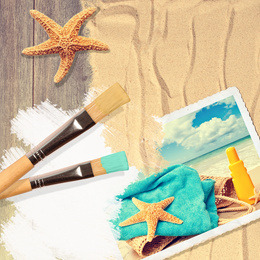 画笔与沙滩背景