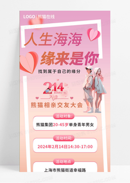 粉色渐变214情人节相亲交友会创意长图
