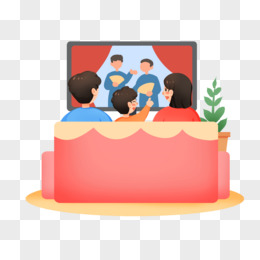 手绘卡通一家人看电视背影免抠素材