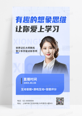 学习教育思维课想象思维课直播课程简约手机海报讲座课堂