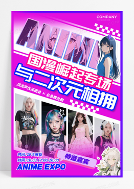 粉色漫画风格与二次元相拥二次元动漫漫展海报