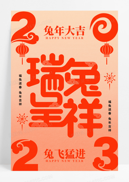 红色创意字体2023兔年春节海报