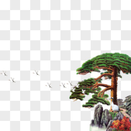 手绘国潮山水仙鹤景观元素