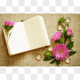 麻布上的笔记本鲜花