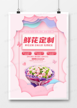 简约鲜花店花坊促销海报