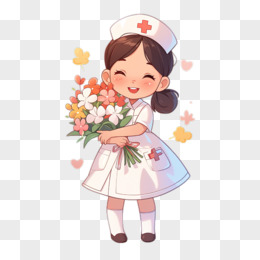 护士节可爱Q版护士开心的抱着鲜花