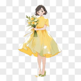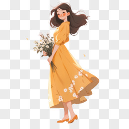 一组手绘卡通动物庆祝生日派对之河马拿鲜花素材