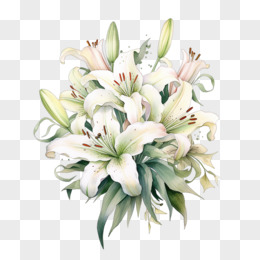 百合花水彩鲜花花束手捧花节日花朵元素
