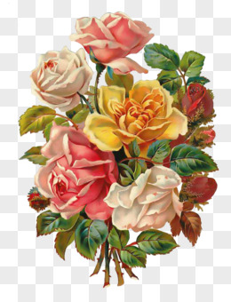 手绘插画风玫瑰花花束素材