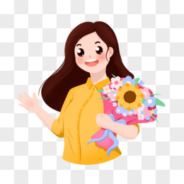 手绘抱着鲜花笑着挥手招手班主任老师元素