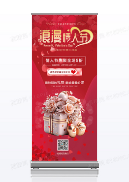 花瓣红色浪漫情人节214情人节鲜花礼物促销展架易拉宝情人节