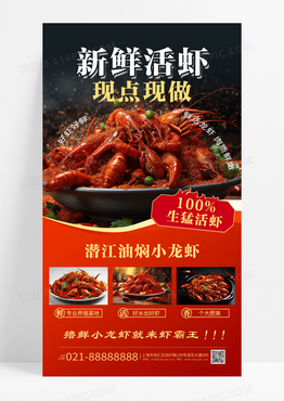 黑红简约色新鲜活虾现点现做美食海报