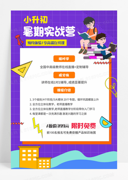紫色简约小升初暑期实战营课程宣传海报暑假衔接班