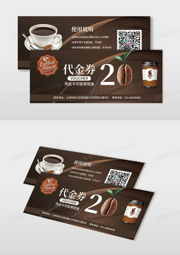 深咖色简约大气咖啡代金券现金抵扣券优惠券