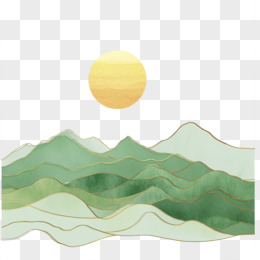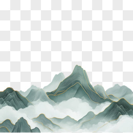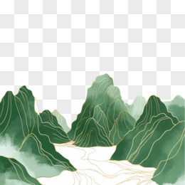 鎏金风格山水画一条河流从两山直接流过免抠元素
