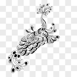 手绘卡通线描孔雀免抠元素
