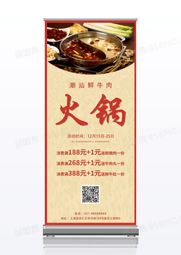 红色简约潮汕鲜牛肉火锅牛肉火锅易拉宝