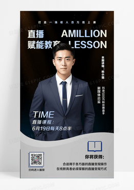 蓝色简约风深邃高级操盘手打造百万线上课直播赋能教育直播课海报设计