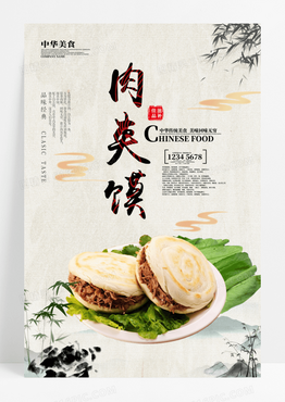 一组国潮风地方传统小吃合集之肉夹馍素材