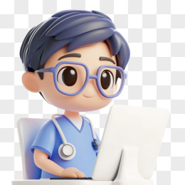 3D手绘医生用电脑线上问诊免抠元素
