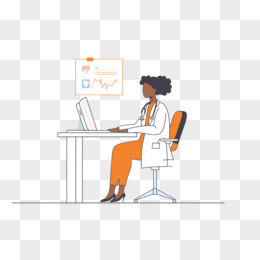 手绘医生用电脑线上问诊免抠元素