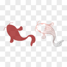 扁平线稿红色锦鲤免抠装饰矢量元素