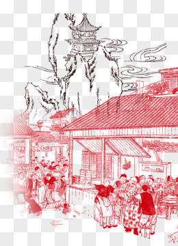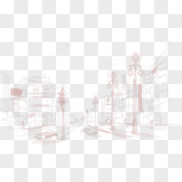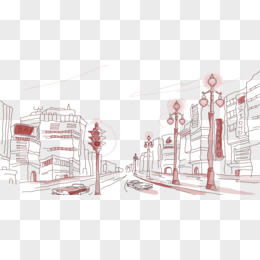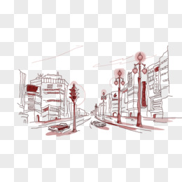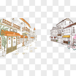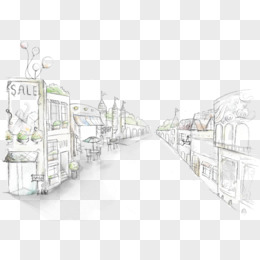 黑白线条街道 街道 建筑 房子 手绘建筑