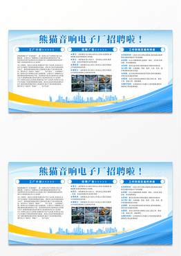 蓝色时尚线条工厂电子厂招聘招人蓝色简约展板招聘展板