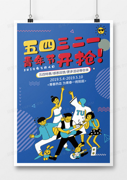 五四青年节卡通促销活动海报
