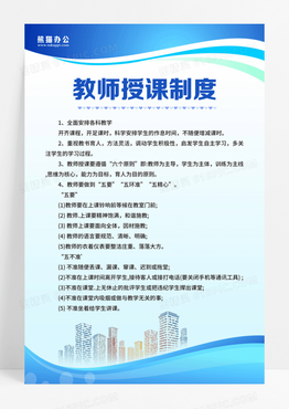 蓝绿色简约大气商务科技风学校规章制度学校制度牌 教师授课制度