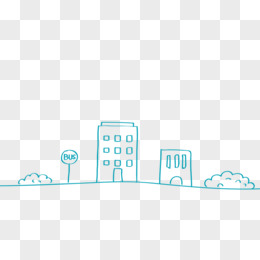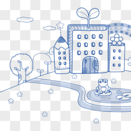 蓝色线条学校池塘